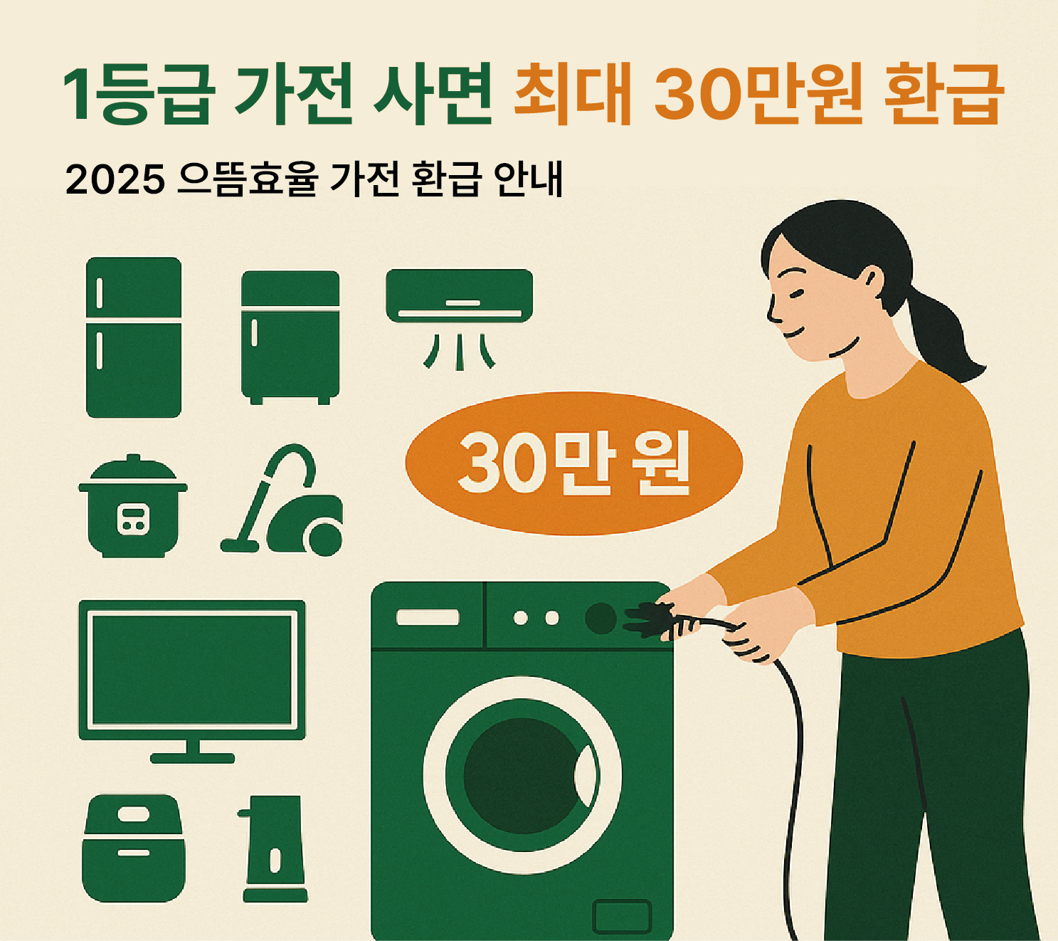 “1등급 가전 사면 정부에서 최대 30만 원 돌려준다”는 소식을 들었어요.